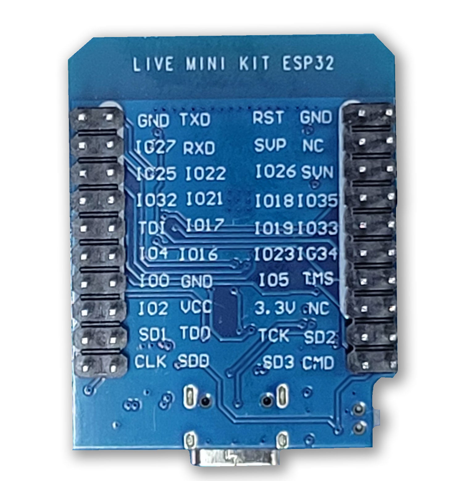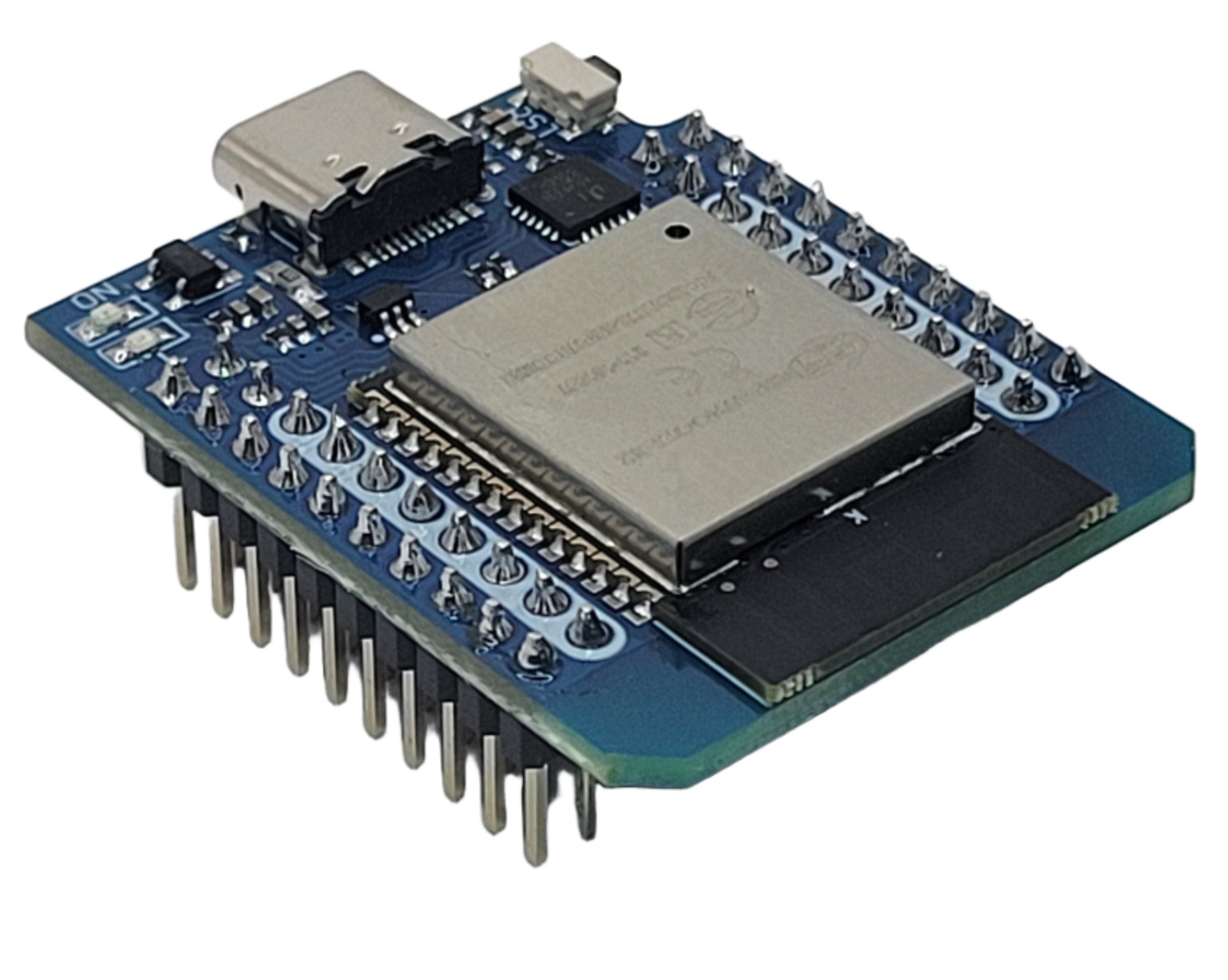 - GPIO: 3×UART, 3×SPI, 2×I2S, 18×ADC input channels, 2×DAC output channels, 2×I2C, PWM/timer input/output available on every GPIO pin, OpenOCD debug interface, SDIO master/slave (50 MHz), external SPI flash (up to 16MB), and SD-card interface support